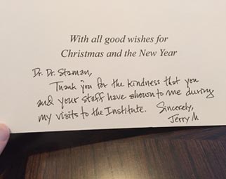 Thank you for the kindness that you and your staff have shown to me during my visits to the Institute. Sincerely, Jerry M.
